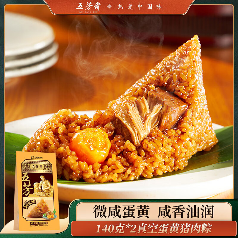 五芳斋粽子中华老字号嘉兴特产真空包装早餐蛋黄猪肉粽140克*2只