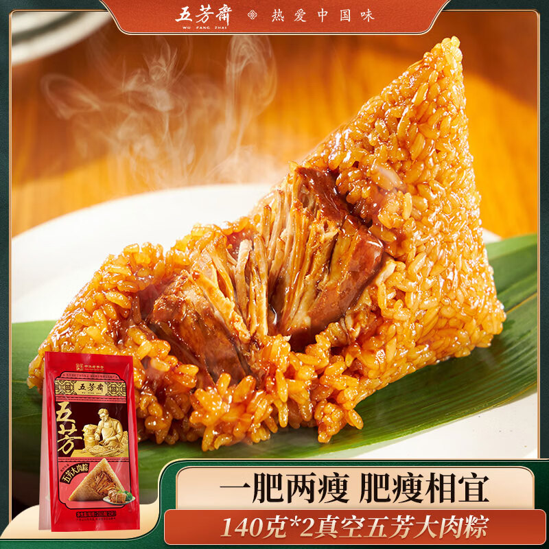 五芳斋粽子 五芳大肉粽280克 140g*2只袋装 中华老字号 嘉兴粽子特产