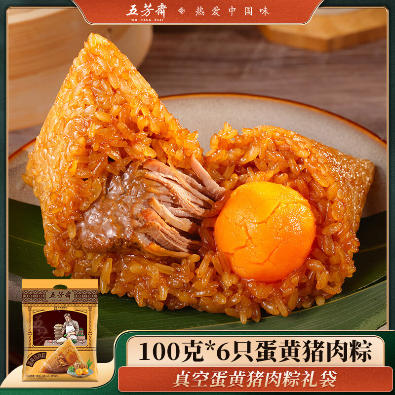 五芳斋粽子 蛋黄猪肉粽100g*6只 礼袋粽600g 中华老字号嘉兴特产 超1斤