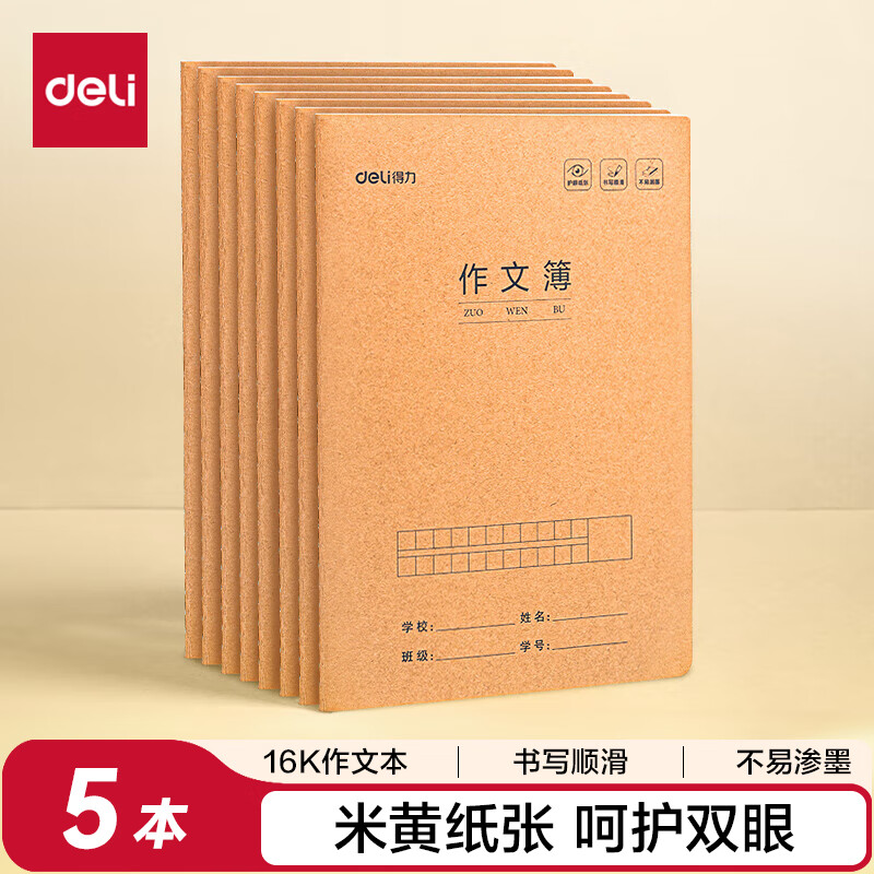 得力(deli)5本作文本16K30张小学生缝线本作业本笔记本本子牛皮纸学生练习簿F1630-5