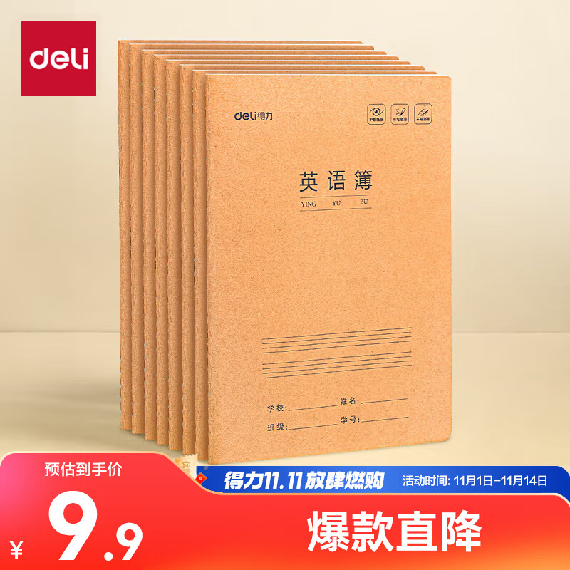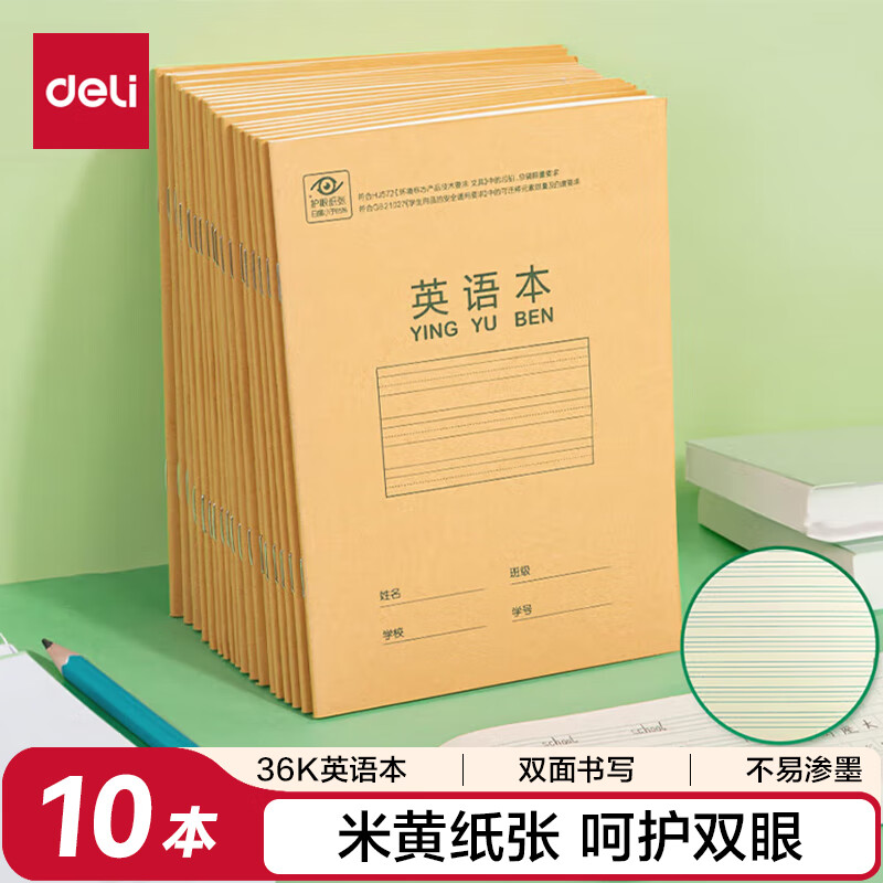 得力(deli)36K14张10行笔记本本子英语本小学生作业本牛皮纸10本装D3616