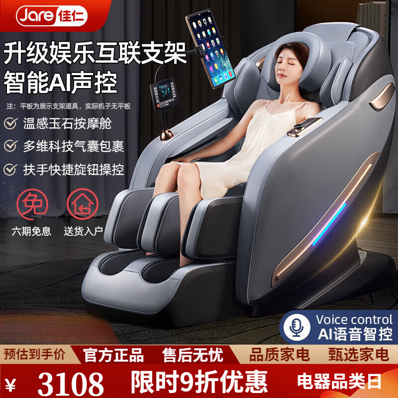 佳仁(JARE)按摩椅家用智能全自动多功能老年人豪华太空舱按摩沙发 德国佳仁健康生活电器 娱乐支架/岫玉按摩/腰背艾草热敷