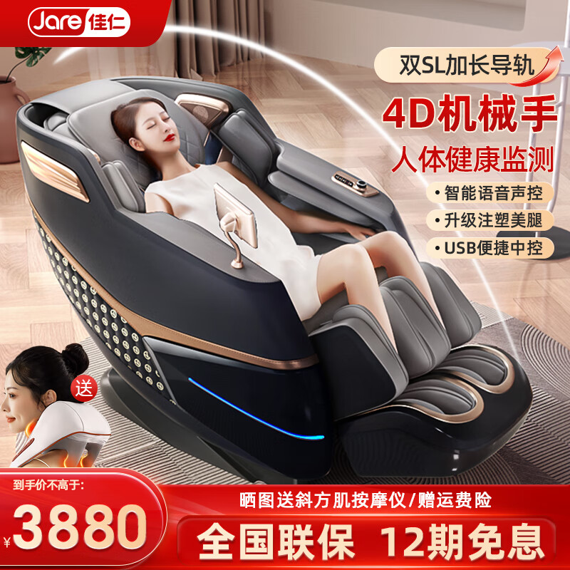佳仁(JARE)按摩椅2025十大品牌家用太空舱全身按摩沙发多功能电动按摩椅子4D