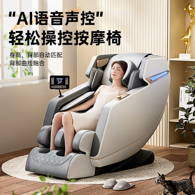 佳仁(JARE)德国"佳仁"®新款按摩椅家用小型全身SL导轨智能太空舱沙发椅999- 米白/语音声控/导轨机芯游走按摩