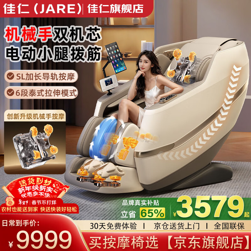 佳仁(JARE)按摩椅全自动按摩椅SL导轨太空舱家用全身按摩沙发大屏电动按摩椅