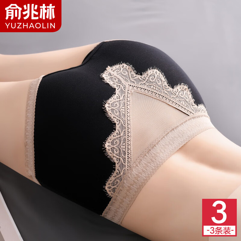 俞兆林内裤女高腰无痕性感蕾丝大码女士收腹提臀纯色棉裆三角短裤 【灰绿色+灰粉色+黑咖色】 3条 L码【80-130斤】