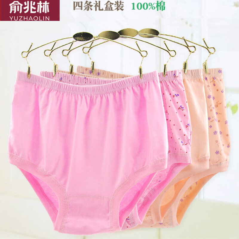 俞兆林内裤女纯棉中老年女士内裤 女纯色印花中年加肥大码宽松老人高腰三角内裤 中老年女4条混装 3XL臀围四尺一155-170斤