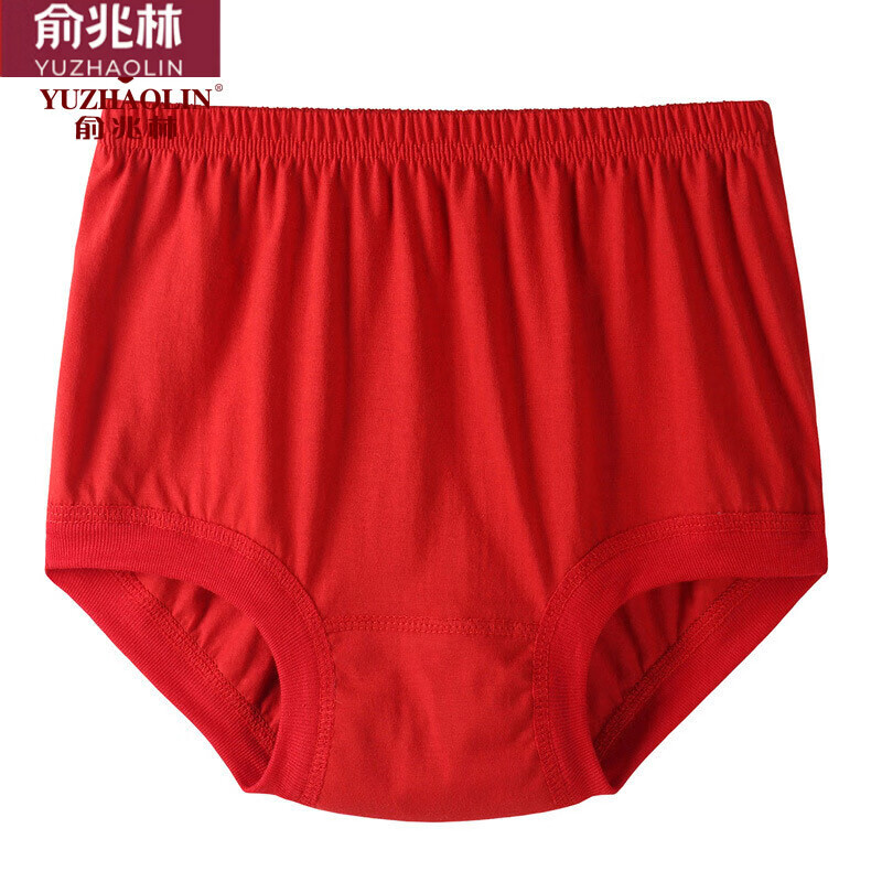 俞兆林内裤女纯棉中老年女士内裤 女纯色印花中年加肥大码宽松老人高腰三角内裤 4条本命年红色中老年女内裤 L臀围三尺四105-125斤