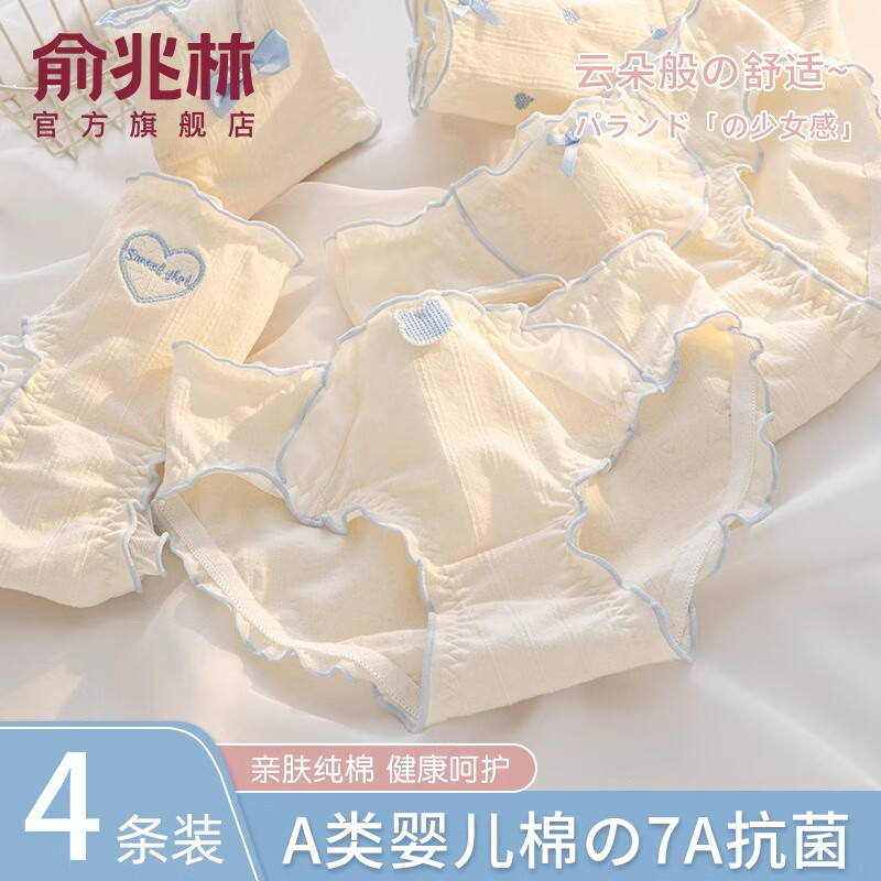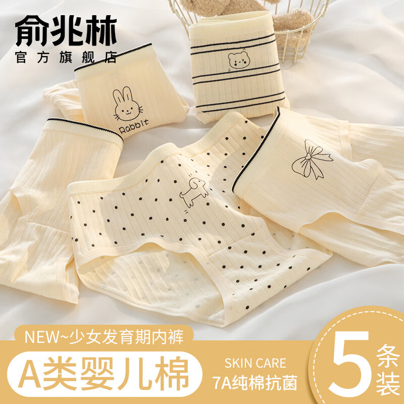 俞兆林内裤女全纯棉中腰7A抗菌裆婴儿棉轻薄透气发育期甜美少女三角裤