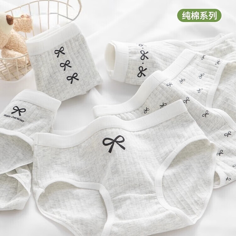 俞兆林内裤女新品蝴蝶结日系莫兰迪简约少女纯棉裆女中腰甜美学生三角裤 NK260【混装4条】 均码(80-135斤)