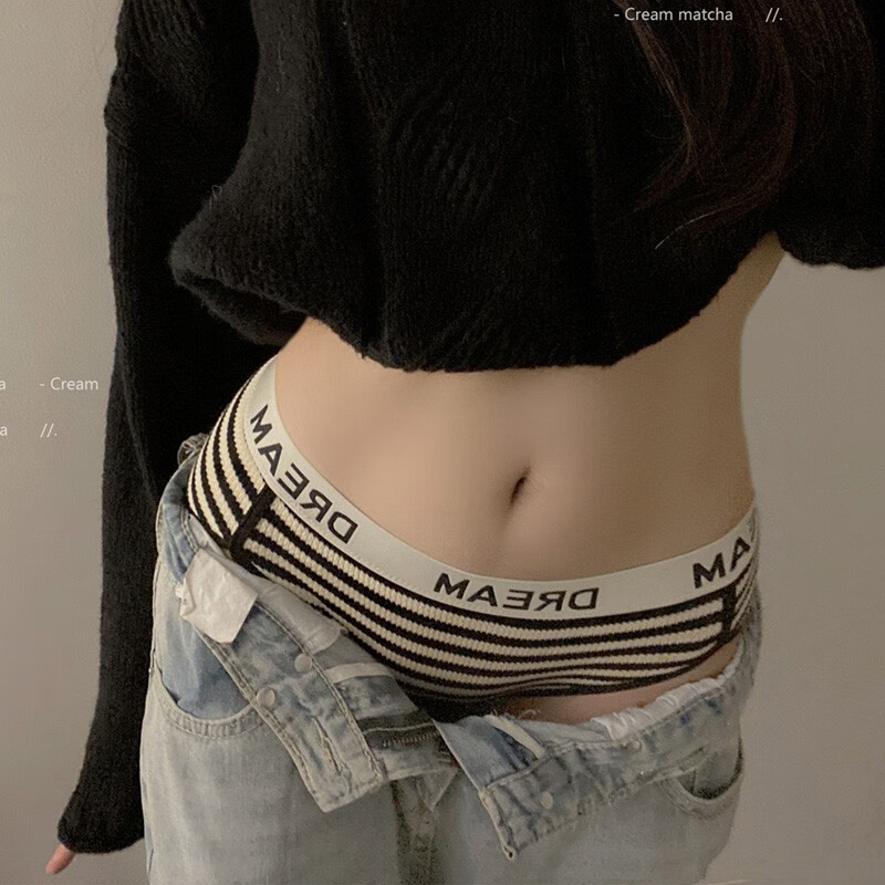 俞兆林(YUZHAOLIN)性感条纹内裤女中腰运动透气少女三角裤日系无痕女士内裤 YZL-条纹字母【黑+咖+绿】 均码(80-130斤)