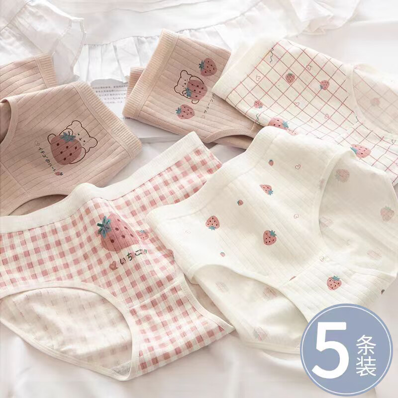 俞兆林5条内裤少女风日系可爱中腰女士短裤头棉质学生三角裤衩女生底裤 NK749草莓系列 5条 均码 (80-115斤)