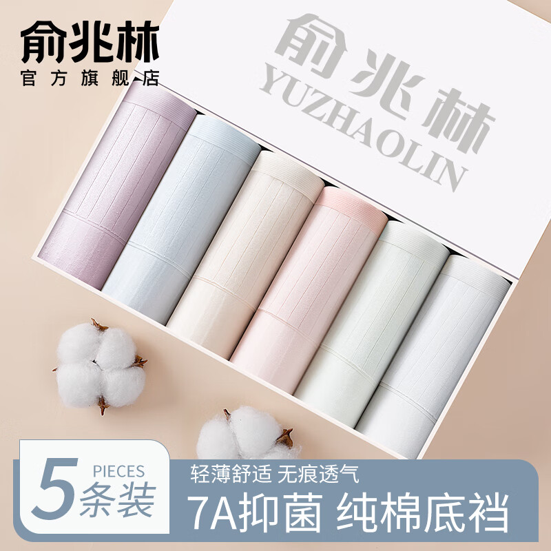 俞兆林【5条装】女士内裤女纯棉7A抗菌无痕裸感底档透气女生中腰三角裤