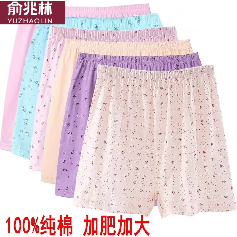 俞兆林4条女士纯棉平角裤中老年内裤老太太加肥加大码妈妈老人平角内裤 A款平角内裤女 4条印花紫蓝粉肤 4XL (160-180斤)