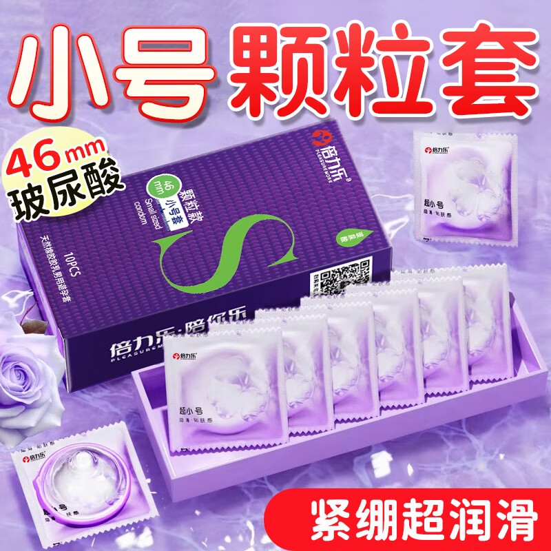 倍力乐避孕套超薄玻尿酸小号安全套男用情趣成人计生用品46mm10只