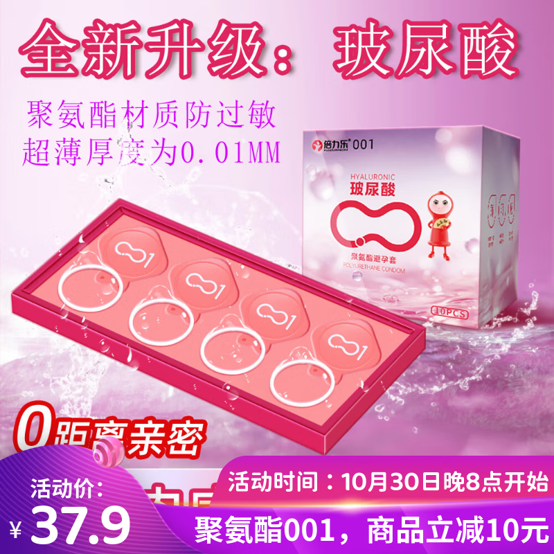 倍力乐001避孕套升级款玻尿酸超薄防过敏安全套男女用计生情趣用品10只
