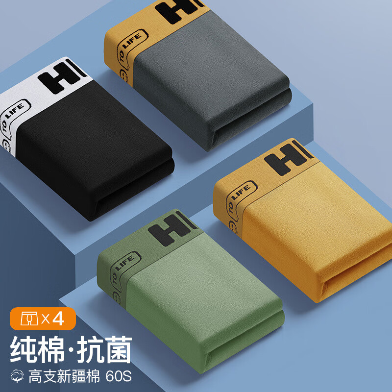 健丹鸟(JIANDANNIAO)男士棉内裤男平角裤透气纯色大码男内裤 A组(抗菌 4条 L 【体重80-110斤】