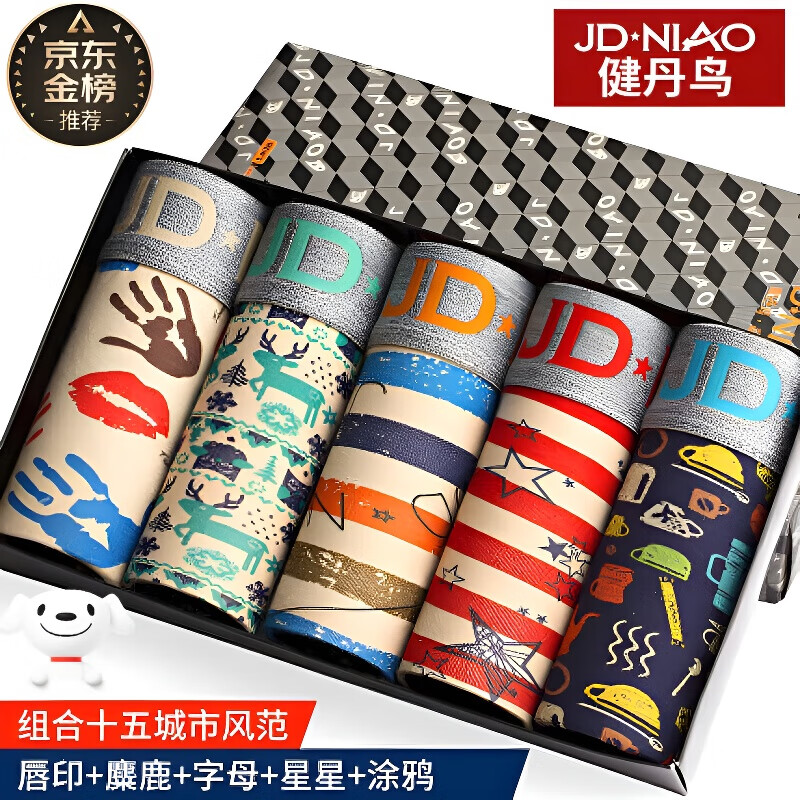 FR.YH.ZH健丹鸟男士内裤潮5条装礼盒装透气中腰平角裤男生舒适裤头 组合十五 1条 L