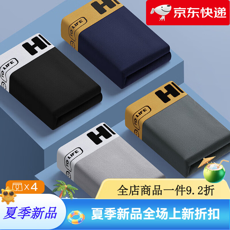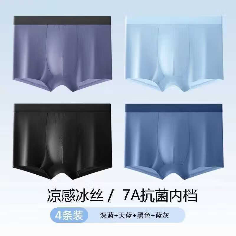 【甄选】健丹鸟冰丝男士内裤夏季薄透气大码平角裤四角短裤头一件 4条 【装】深蓝+天蓝+黑色+蓝灰 L 【体重80-100斤】