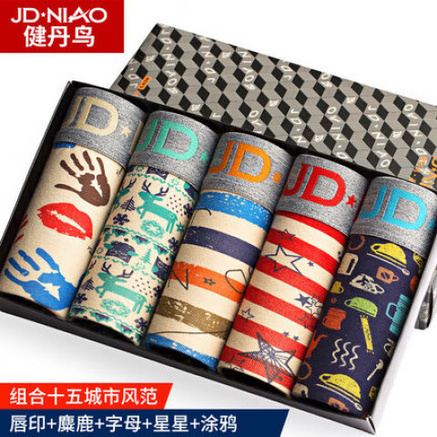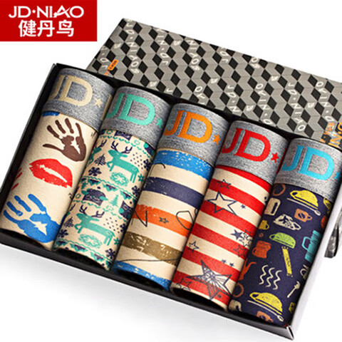 健丹鸟(JIANDANNIAO)男士棉制平角裤内裤礼盒装厂家直供透气保暖新款5条袋装4条 组合十五 L