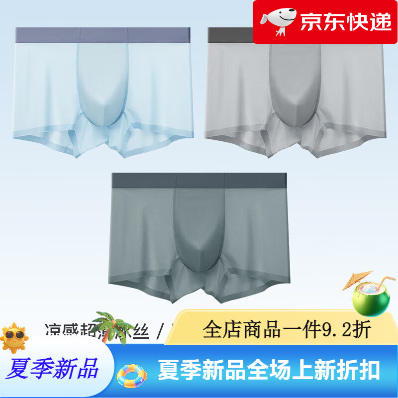 健丹鸟(JIANDANNIAO)冰丝无痕内裤男士7A裆网眼透气大码夏季四角短裤男 寒冰蓝+气质银+中灰蓝 L _【体重90-120斤】