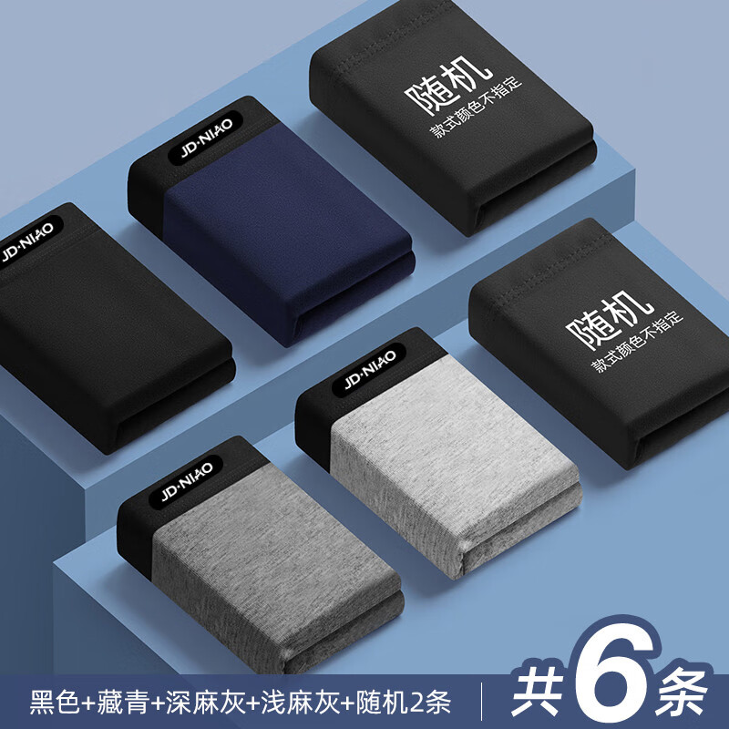 健丹鸟男士内裤男款平角裤透气四角裤短裤衩大码底裤头夏 经典纯色_ 6条 L _【体重80-100斤】