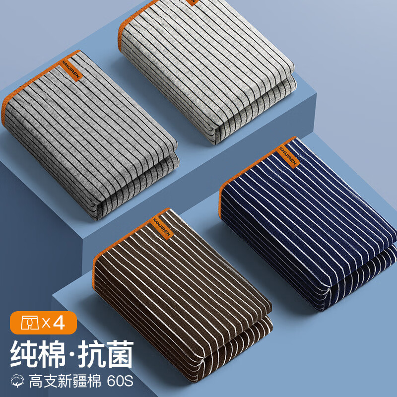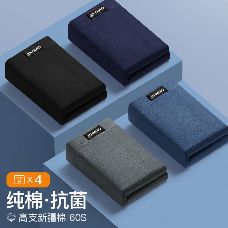 健丹鸟(JIANDANNIAO)男士棉内裤男平角裤透气纯色大码男内裤 D组(抗菌 4条 XL 【体重110-130斤】