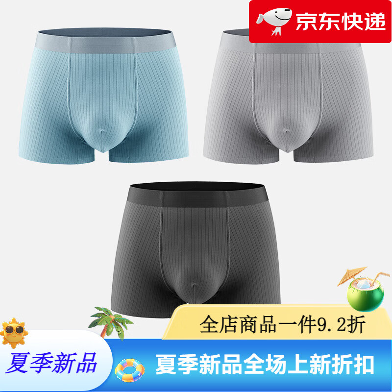 健丹鸟(JIANDANNIAO)无痕纯棉内裤男士桑蚕丝裆网眼透气夏季薄款大码短裤头 冰雪蓝+摩登灰+魅影灰 L _【体重90-120斤】