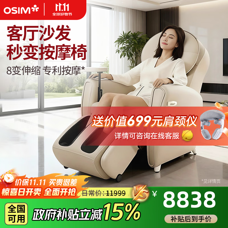 傲胜(OSIM)【政府补贴15%】按摩沙发椅百变小天后家用按摩沙发椅全身按摩OS-8211P 送礼优选 按摩椅 马鞍棕