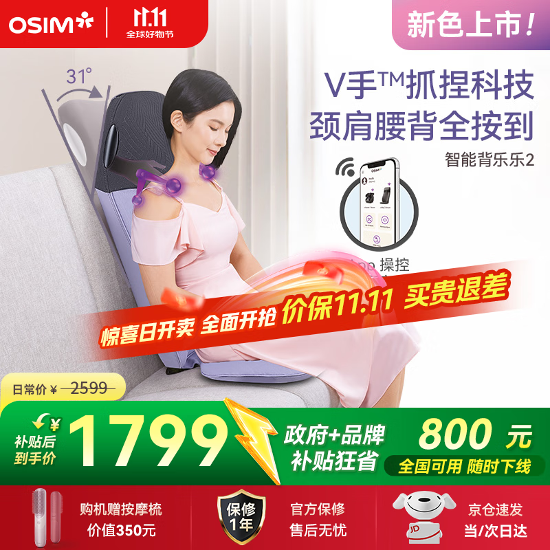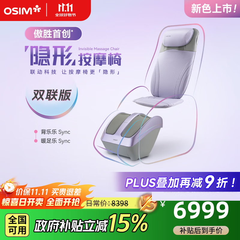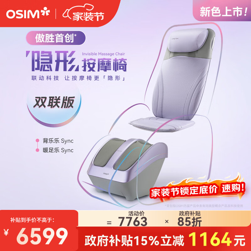 傲胜(OSIM)隐形按摩椅家用智能全身小型OS2233按摩背垫+OS3233足疗机套装 紫罗兰色 生日礼物实用送父母