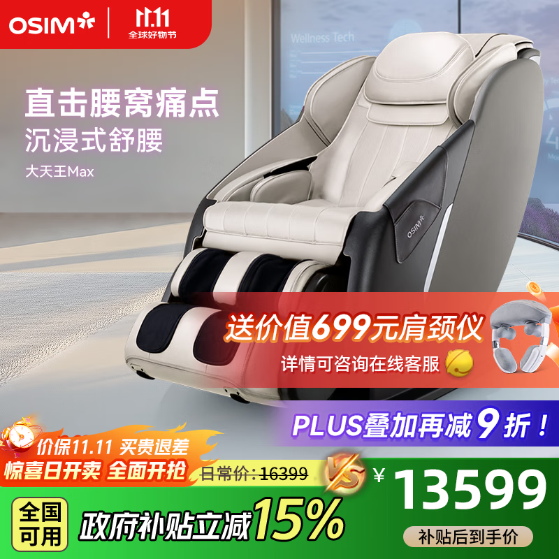 傲胜(OSIM)【政府补贴15%】按摩椅家用全身零重力V手科技MAX大天王 OS-860MAX胡桃棕 生日礼物实用送父母