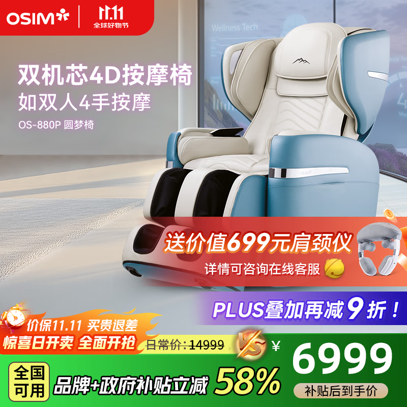傲胜(OSIM)【政府补贴10%】按摩椅云更新科技家用全身智能大天王Pro OS-880P 远黛蓝 生日礼物实用送父母