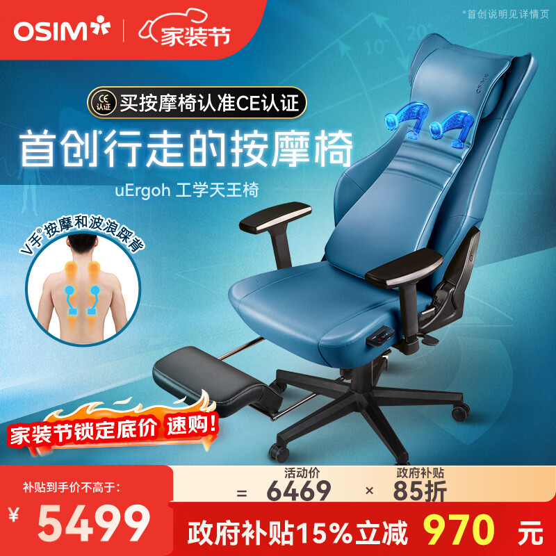 傲胜(OSIM)按摩椅小型人体工学天王椅+踩背按摩电脑办公椅电竞学习椅OS-8245蓝色【有脚踏】生日礼物实用