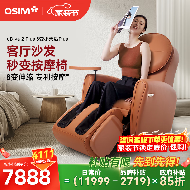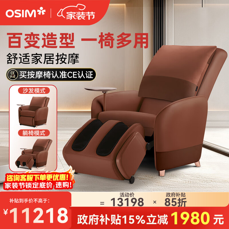 傲胜(OSIM)【政府补贴15%】按摩沙发椅百变小天后家用按摩沙发椅全身按摩OS-8211P生日礼物实用送父母 按摩椅 马鞍棕