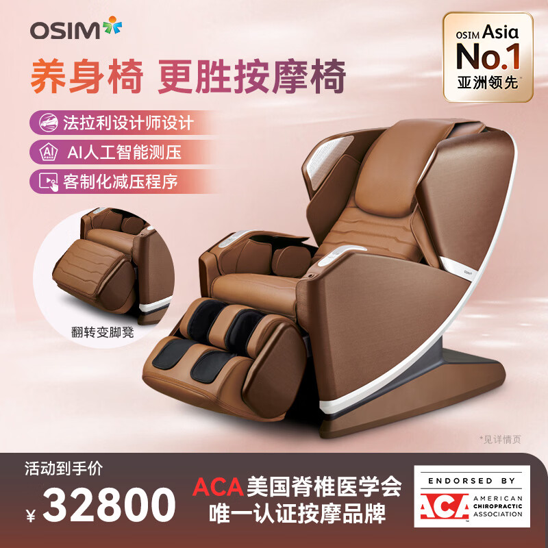 傲胜(OSIM)家用按摩椅 全自动按摩 减压养身椅 豪华太空舱 全身按摩 OS-8218褐色 生日礼物实用送父母