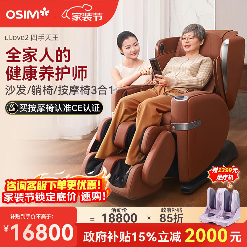 傲胜(OSIM)按摩椅家用4手+双区热敷多功能智能按摩沙发椅全身OS-888四手天王椅 棕色 生日礼物实用送父母