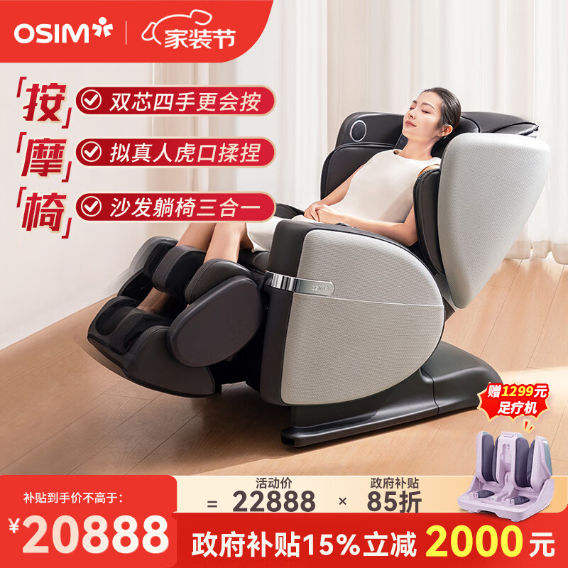 傲胜(OSIM)【CE真品质】【政府补贴15%】按摩椅V3舒压养身科技多功能V手按摩椅OS-8242米白色 生日礼物实用