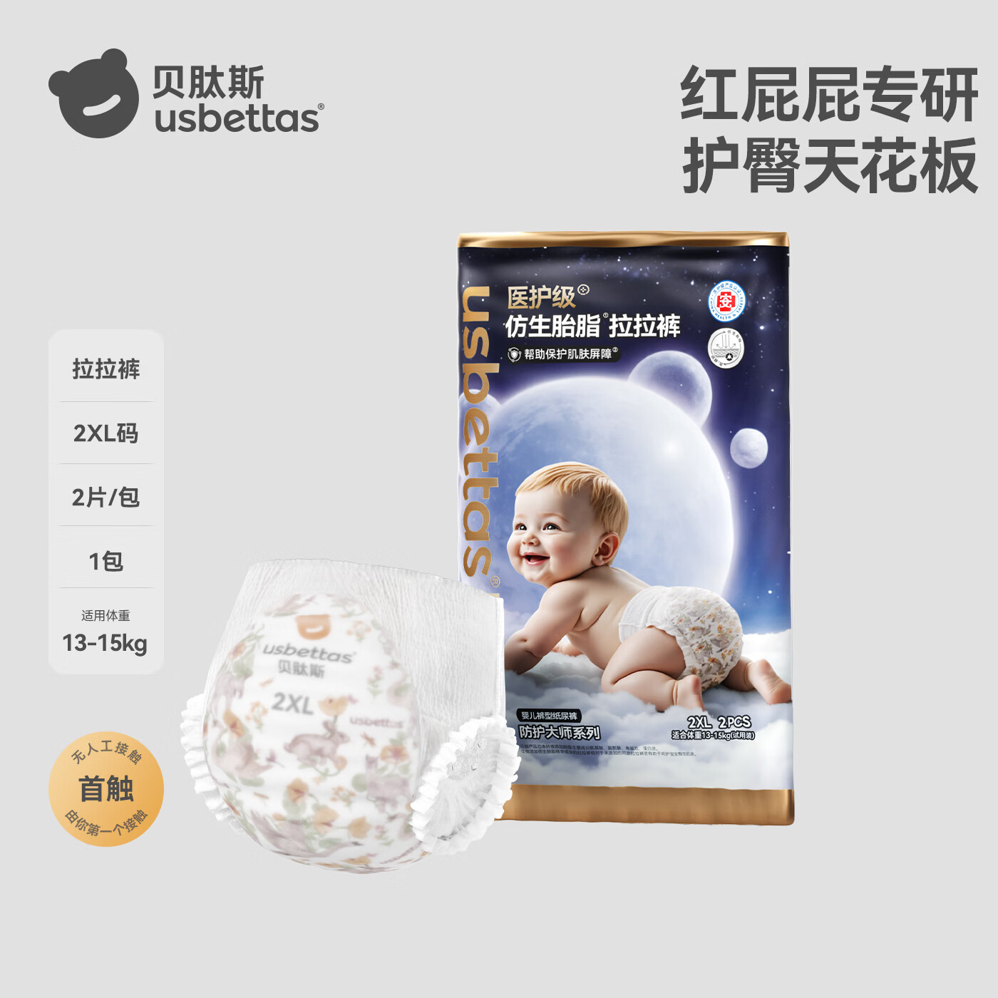贝肽斯仿生胎脂皮拉拉裤婴儿尿不湿新生儿童男女宝宝超薄防水透气纸尿裤 2XL 2片 拉拉裤(试用装) 1包