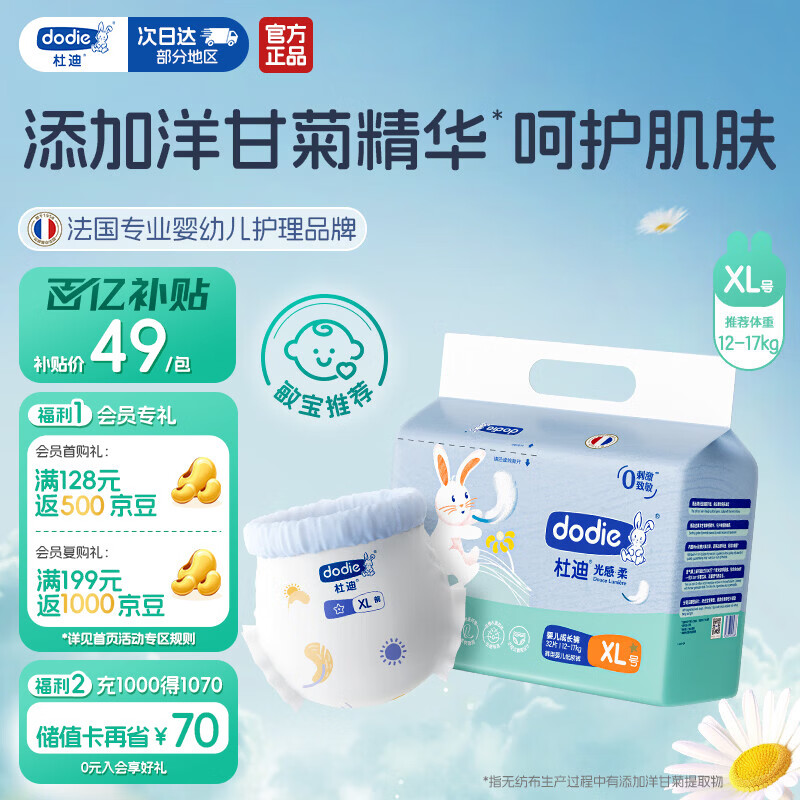 dodie杜迪光感柔系列拉拉裤儿童尿不湿XL码32片超薄透气防红屁屁成长