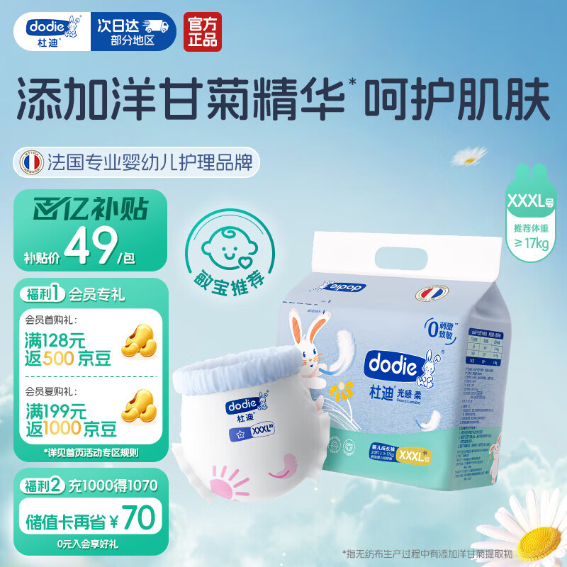 dodie杜迪光感柔系列拉拉裤儿童尿不湿XXXL码超薄透气防红屁屁成长裤