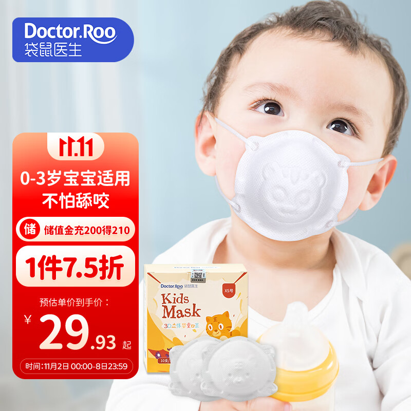 袋鼠医生儿童口罩3d立体0-6个月婴幼儿宝宝口罩6-12月白色10支防花粉柳絮
