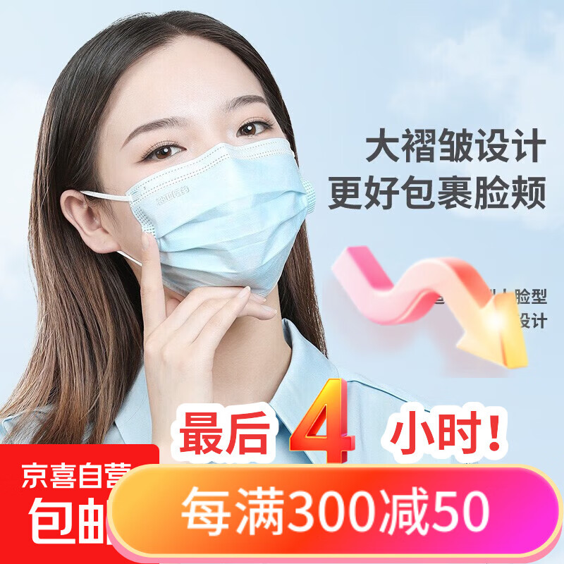 振德一次性医用外科口罩白色成人儿童透气防粉尘过敏鼻炎雾霾 100只