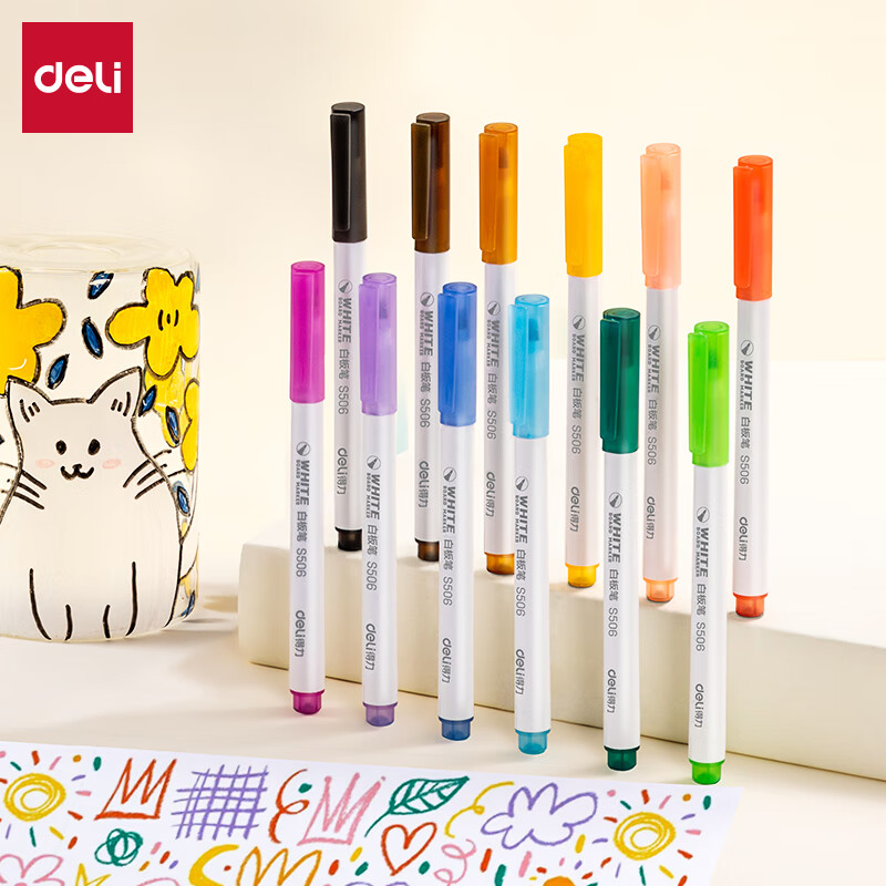 得力(deli)儿童彩色可擦白板笔益智学生文具套装 马克笔水彩笔家庭涂鸦绘画 12色 S506 儿童节礼物
