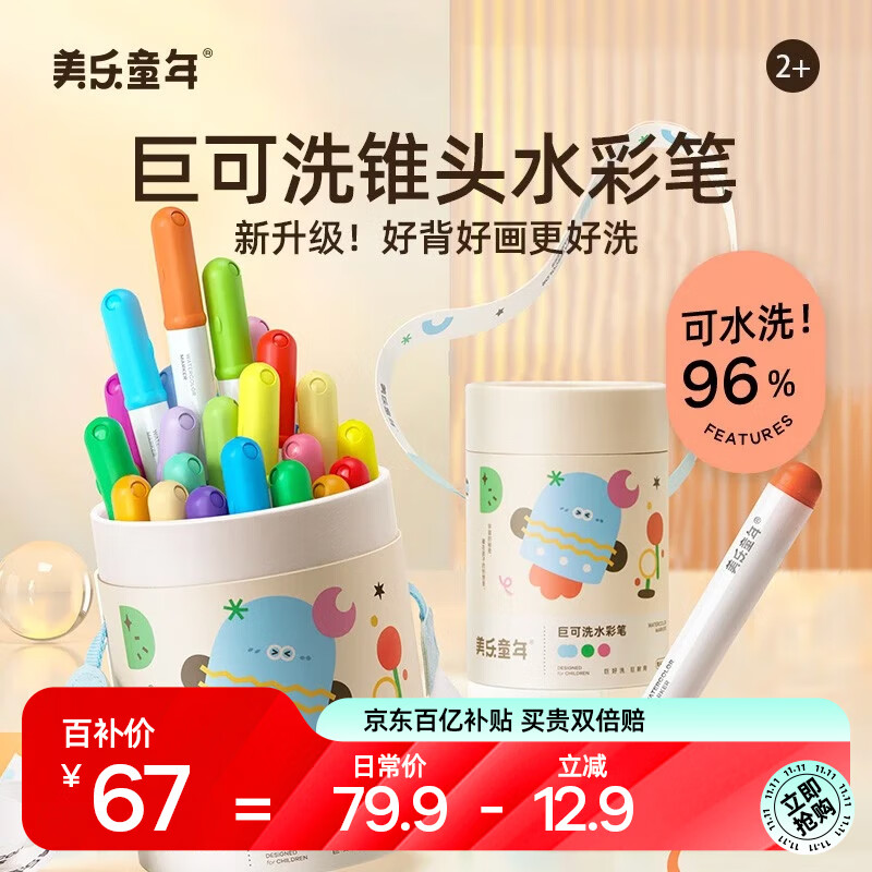 美乐童年儿童水彩笔24色绘画画笔无毒可水洗粗头幼儿园小学生3-8岁马克笔