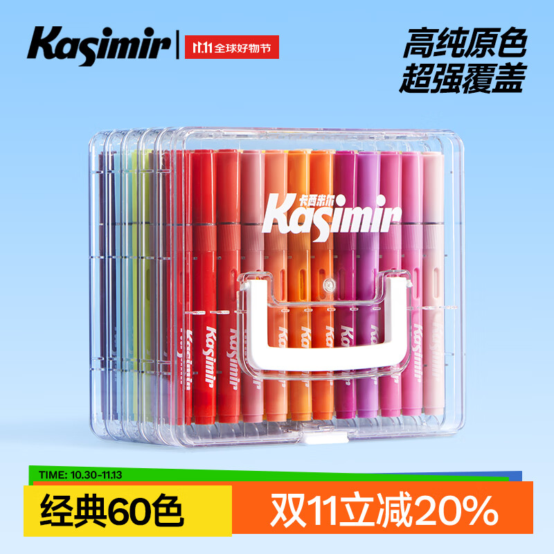 Kasimir卡西米尔直液式丙烯马克笔软头小学生专用可叠色无毒水彩笔美术颜料笔画笔儿童礼物生日礼物60色水彩笔
