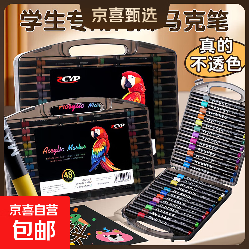 丙烯马克笔卡皮巴拉贴纸小学生专用女孩礼物水彩笔可叠色彩色笔防水儿童画笔 其他/other 36色(送熊猫贴纸+升级收纳桶)