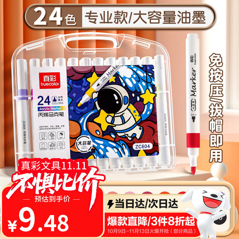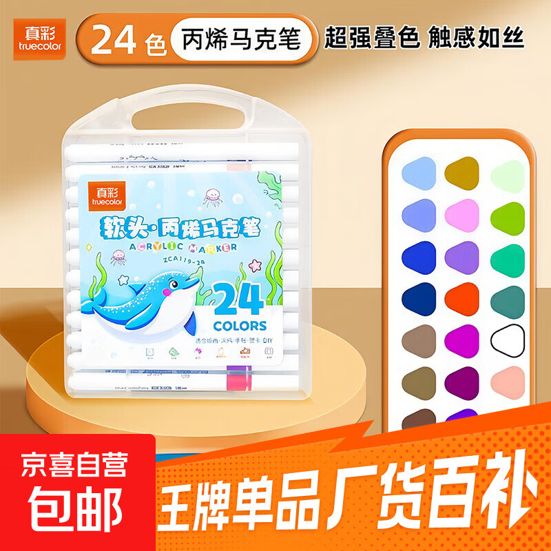真彩(TRUECOLOR)24色大容量丙烯马克笔单头不透色可叠色学生美术专用儿童涂鸦手绘咕卡绘画笔节日礼物ZC604水彩笔
