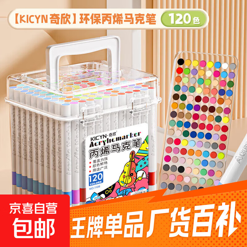【超级爆款】舒星60色丙烯马克笔美术生专用手工diy儿童水彩笔小学生画画不透色可叠色笔芯脸部绘彩涂鸦比心碧玺笔防水