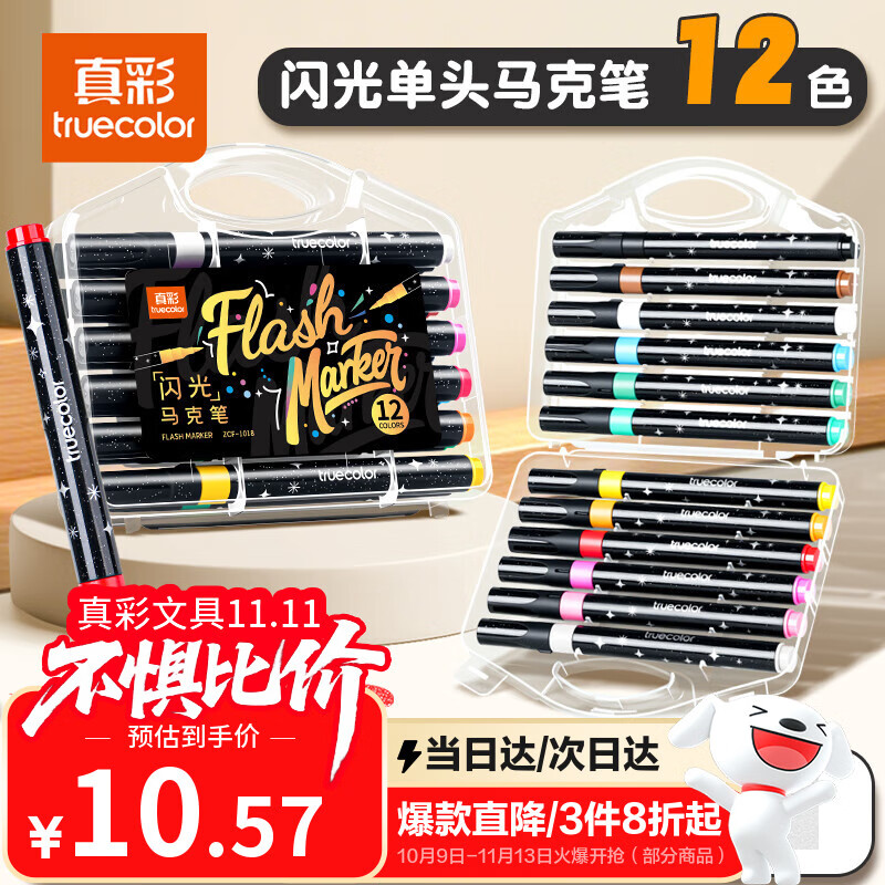 真彩(TRUECOLOR)12色软头闪光马克笔单头带流光闪粉啫喱水彩笔荧光笔镭射珠光彩绘画手抄报儿童小学生手账专用1018