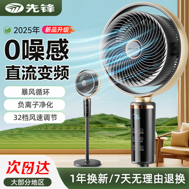 先锋空气循环扇家用宿舍台式电风扇2024新款落地扇办公室桌面台扇风扇小风扇